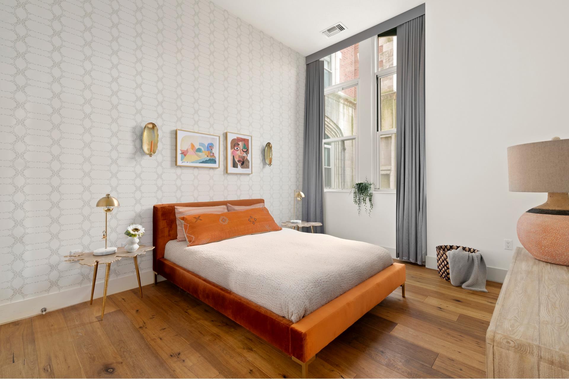 Request InfoWelcome home to this incredible 1,473sf north and west-facing corner SECOND FLOOR, 2BR/2BA true condominium loft with 12ft ceilings, distressed 8" wide-plank and herringbone oak floors, and stunning oversized arched double-hung windows that flood the living areas with natural light. Direct access from the living room to a wonderful large private terrace.