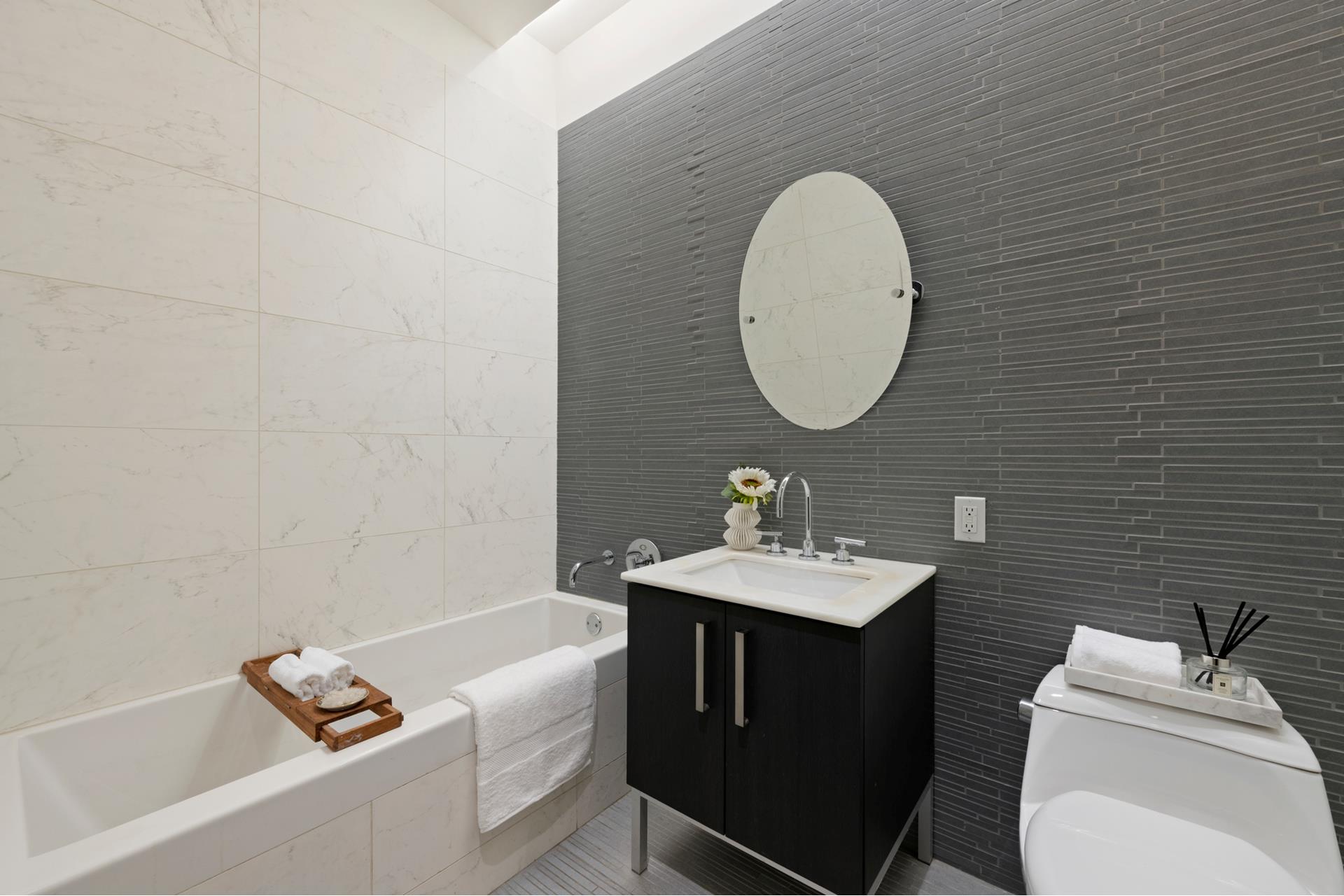 Upon entering, the 23ft welcoming foyer features a large coat closet and in-unit washer/dryer closet. Next, the open floor plan great room offers separate, warm and inviting areas for distinctive living, dining, food prep and recreation. The chef's kitchen features a massive center island with Caesar-stone countertops, quartzite backsplash, Italian Stevali walnut-toned cabinetry, KitchenAid stainless steel appliances, and Hans Grohe faucet. Next to the kitchen is a spacious dining area with seating for ten, and an airy, sun-drenched living room for relaxing and entertaining. Both bedrooms overlook the garden on the quiet, south side of the loft. Both bedrooms can accommodate a king size bed, and the primary has a spacious walkthrough closet. The primary bathroom has honed Palmira tile, a luxury soaking tub with Carrara Marble walls, rain shower head and Toto toilet. The residence also has central heat and air-conditioning, and an optional storage locker in the basement.