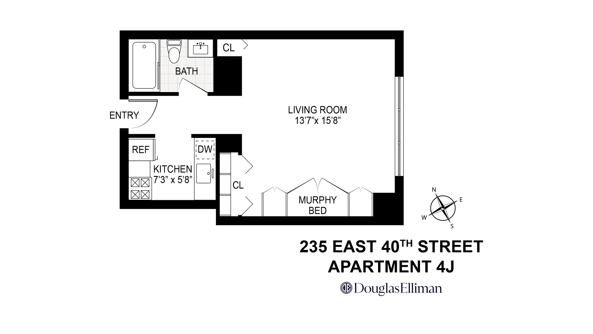 Welcome home to this warm and peaceful studio apartment with sunny western exposures, practical built-ins and a Murphy bed (provide your own queen-sized mattress). The fully-equipped galley kitchen is complete with stainless steel appliances, including dishwasher and gas stove/oven. A full-size marble bathroom, hardwood floors, and two large closets complete this idyllic home.