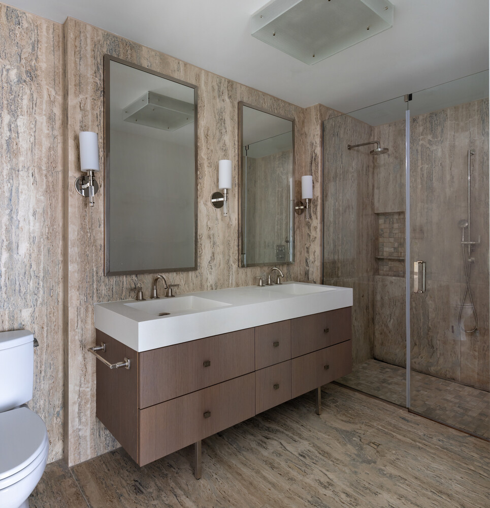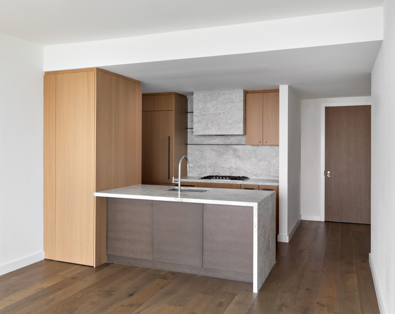 This amazing residence features multi-zone heating and cooling, wide-plank flooring, in-unit laundry by Whirlpool, and massive amounts of closet space. The kitchen is equipped with a peninsula, custom white oak Italian cabinetry and pantry, leathered-finish White Princess Quartzite countertops, backsplash, and a fully-integrated Gaggenau appliance package. The bathrooms feature Alabastrio Rustico travertine marble, custom brushed Oak vanities, cast-stone sinks, a framed medicine cabinet, under vanity night lighting, and radiant heated floors.